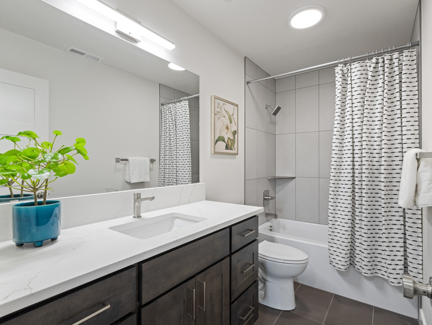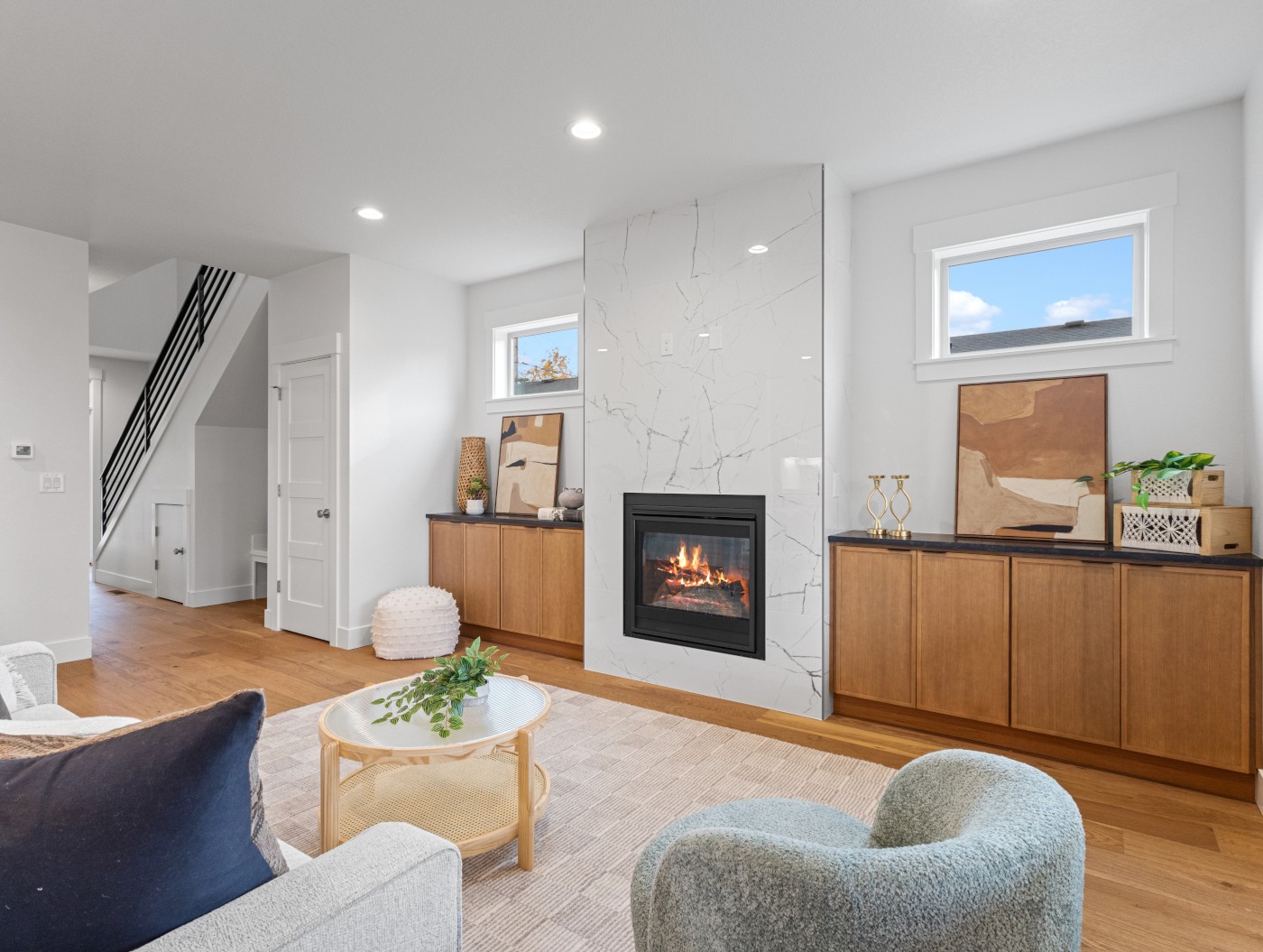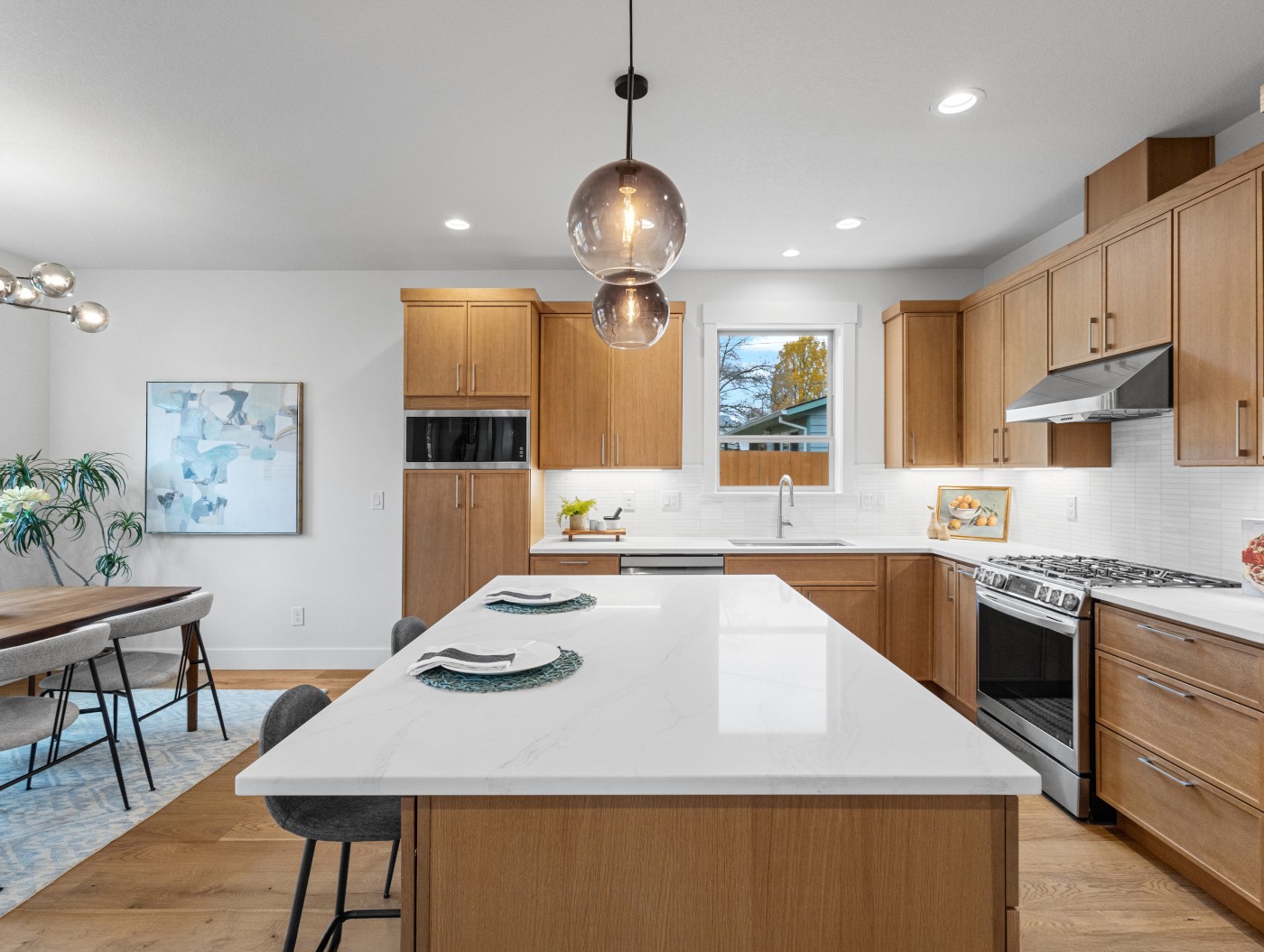 SOLD! 01/27/2026 - Prepare to be amazed by this stunning Pacific Northwest contemporary home. This remarkable new construction showcases an impressive open-concept layout—perfect for modern living. Thoughtfully designed to feel even larger than its 2,187 square feet, the home delivers both spaciousness and style. Every detail reflects the craftsmanship of a premier builder, with a custom kitchen, designer finishes and fixtures, engineered hardwood floors, exquisite tile work, and quartz counters throughout. High ceilings and an abundance of windows create a bright, airy atmosphere on both the main and upper levels.